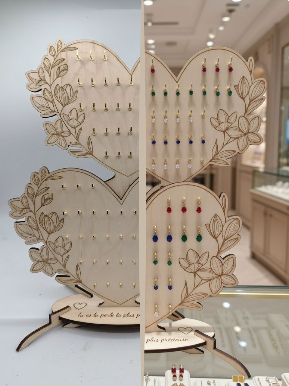 Ornementation Gravée : Chaque cœur est délicatement bordé de fleurs de magnolia et de feuillages printaniers, apportant une touche de nature et de douceur.