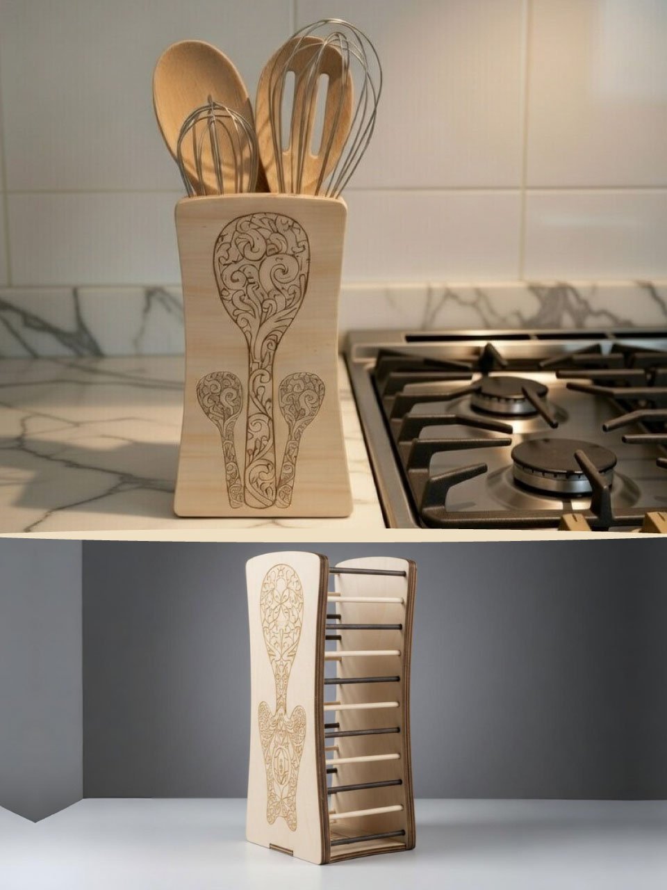 Esthétique coordonnée : Ce porte-ustensiles complète parfaitement notre gamme de spatules et cuillères gravées "Cœur".