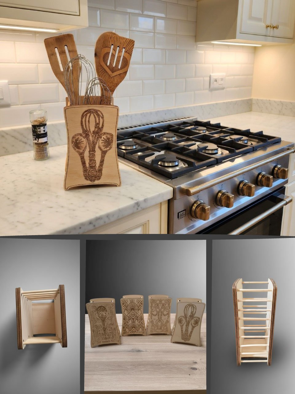 Esthétique coordonnée : Ce porte-ustensiles complète parfaitement notre gamme de spatules et cuillères gravées "Cœur".