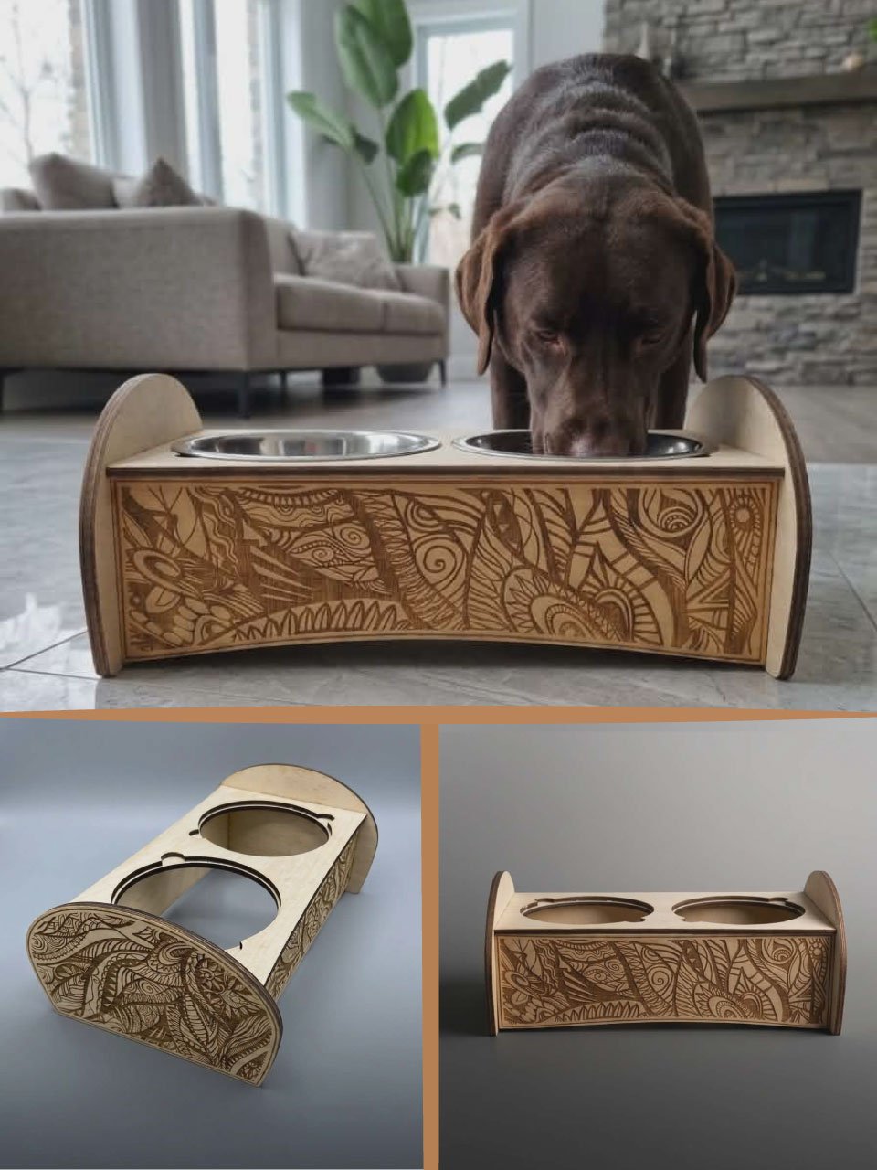 Support de gamelles thème Zentangle pour moyen chien
