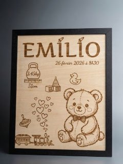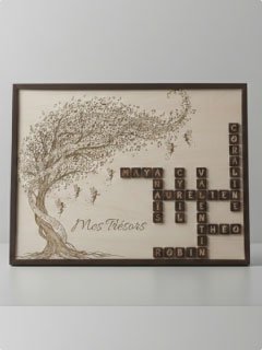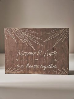 Chez Tominov, nous créons des cadeaux uniques en bois gravé qui marquent les esprits : anniversaires, baptêmes, baby-showers, mariages, naissances…